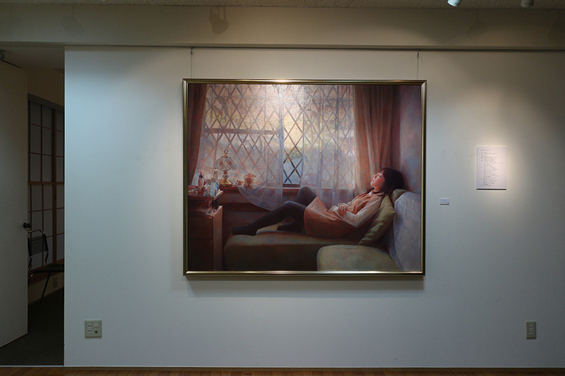 浅村の描く作品は、光の描き方が柔らかで、とても優しい印象を覚えます。レースのカーテン越し、あるいは曇りガラスに差し込む光、窓辺にそそぐ夕日など、室内に差し込む光がモチーフを照らしています。それは浅村のフィルターを通し、身近なモチーフを愛おしむ想いが素直に表現されています。