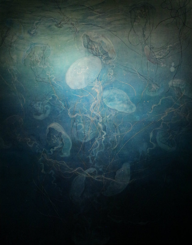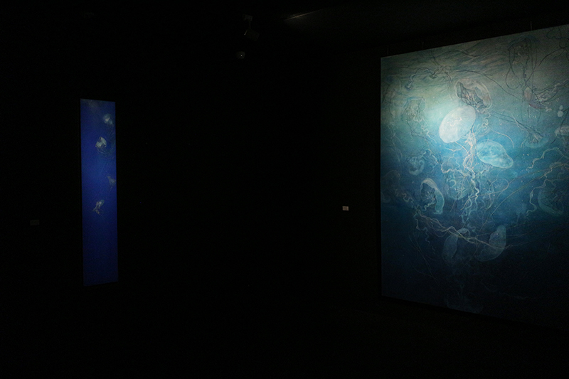 本展「brightness」では、植物画と海の世界を地下1階と中地下の二部屋にわけ展示します。地上と海底