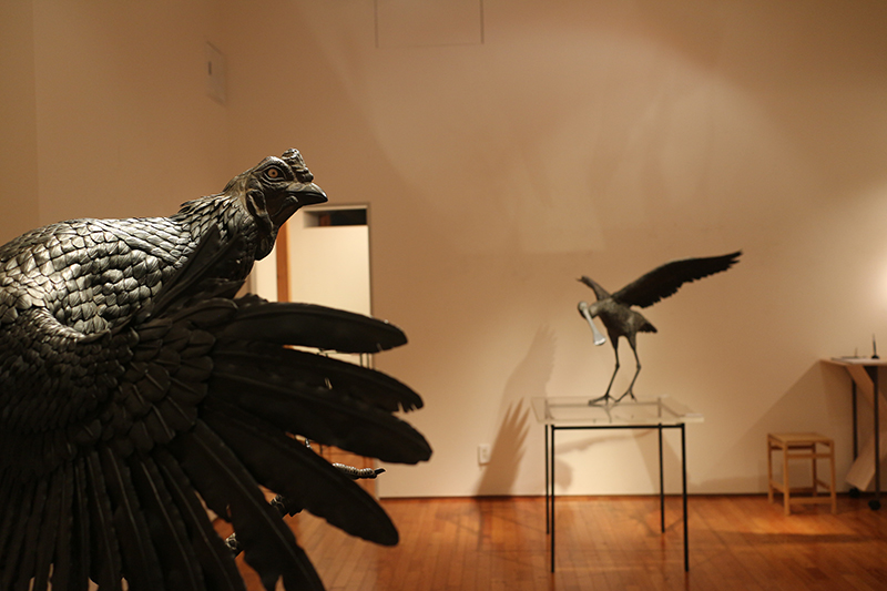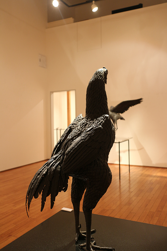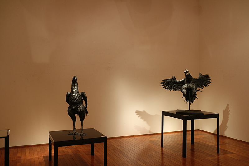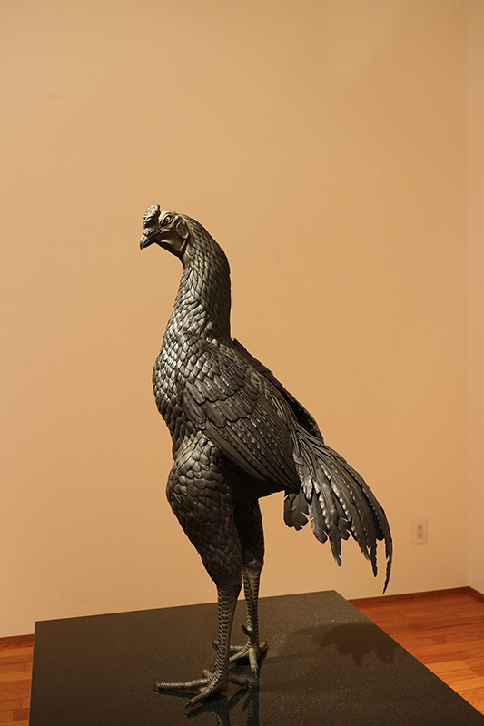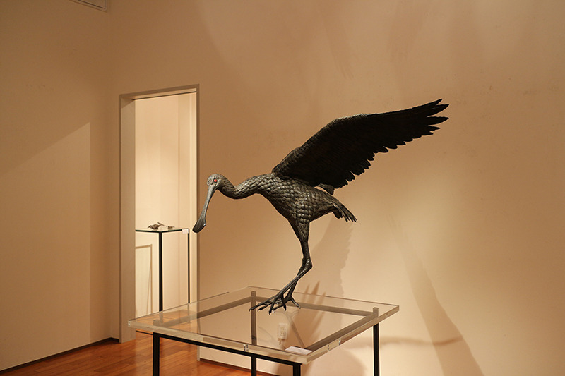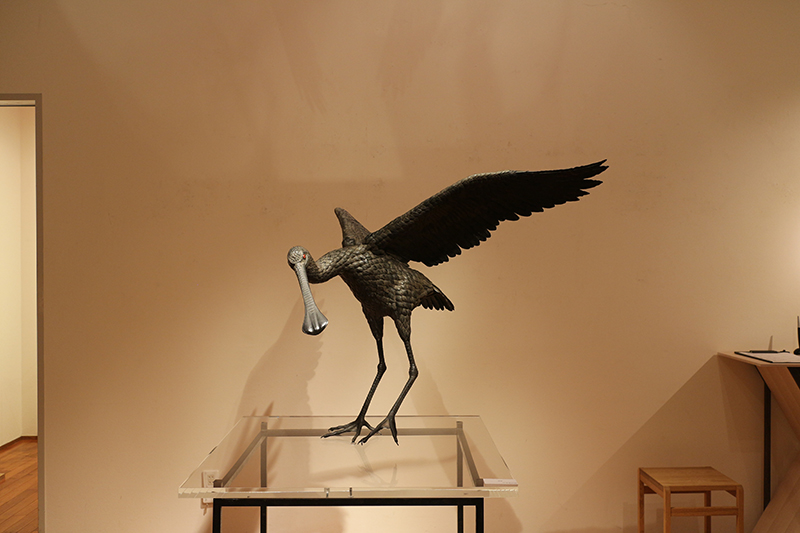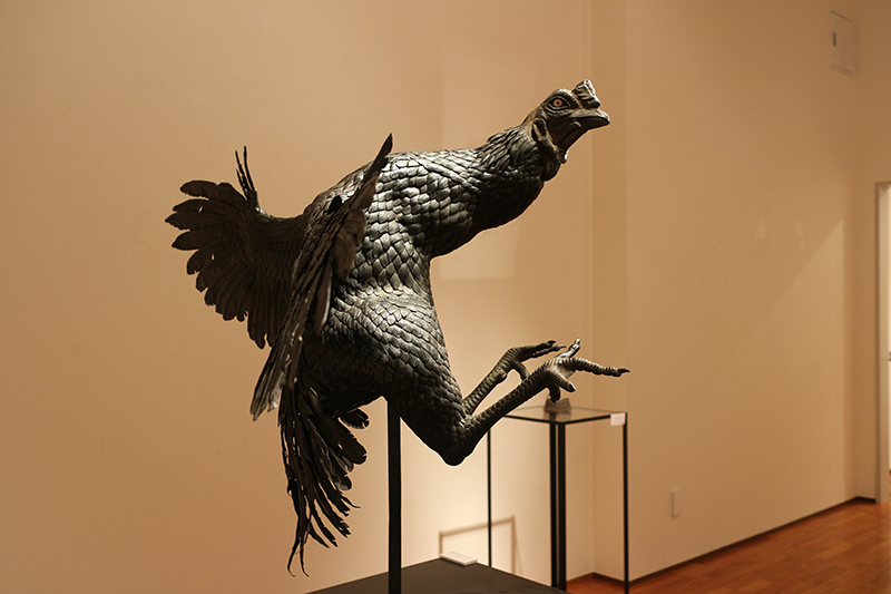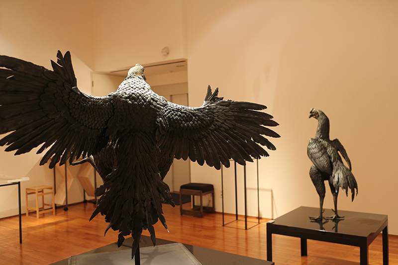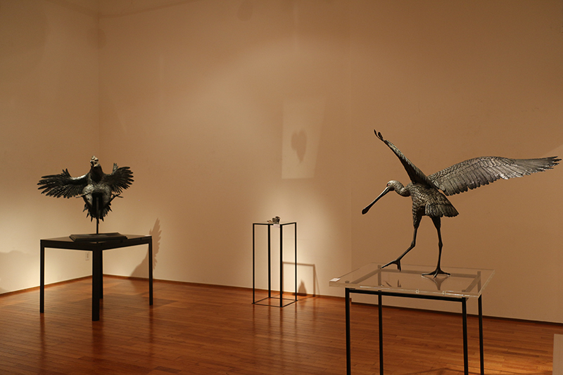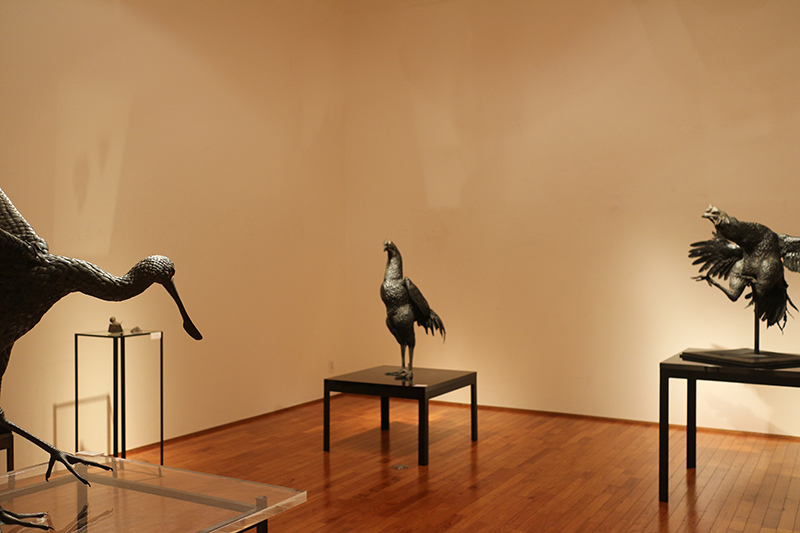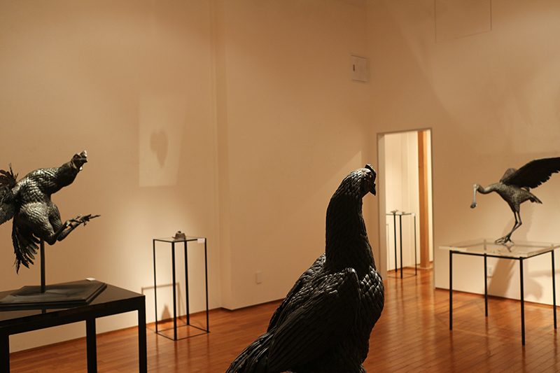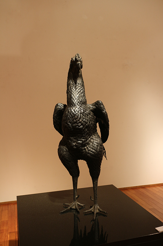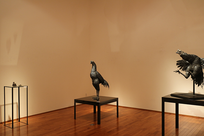 今回は個展という形で、固い素材である鉄を主な素材として、躍動的な動物や鳥など
