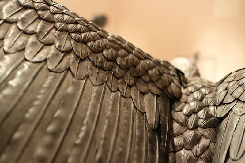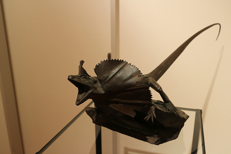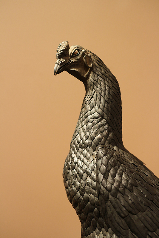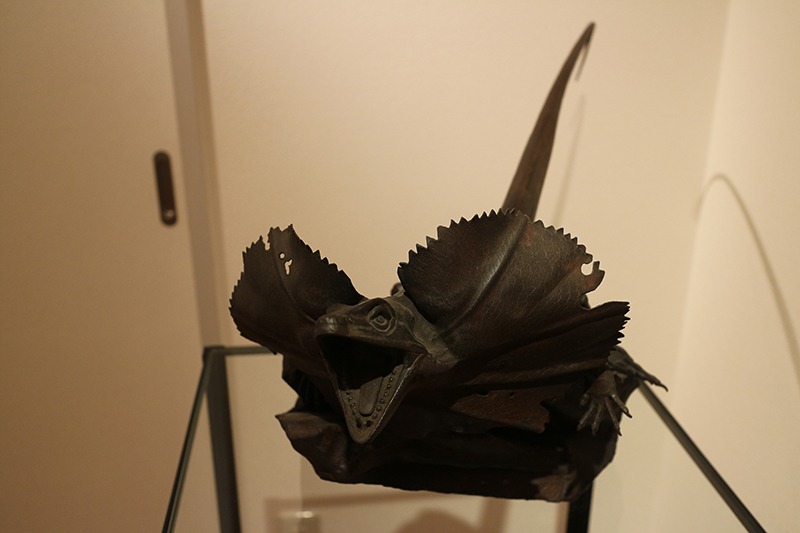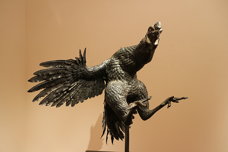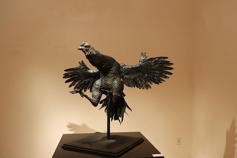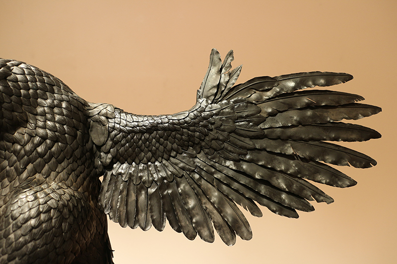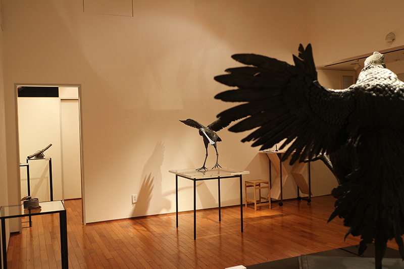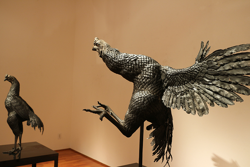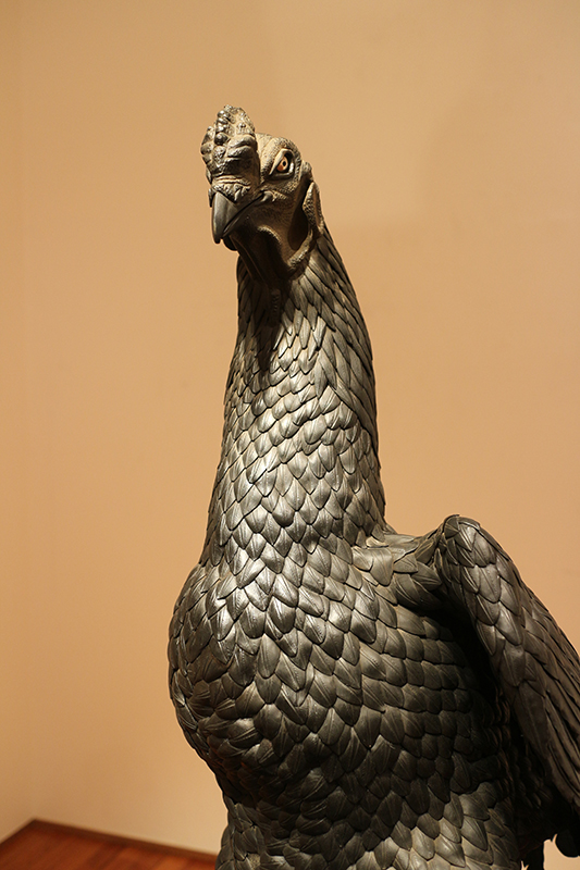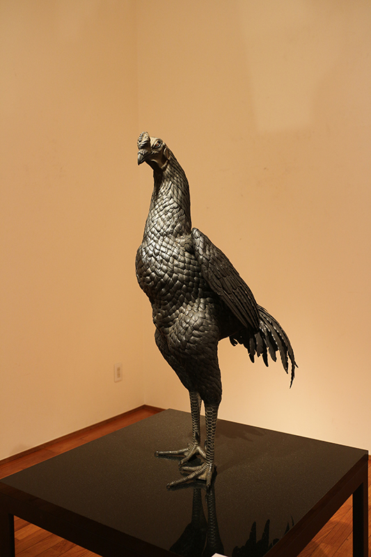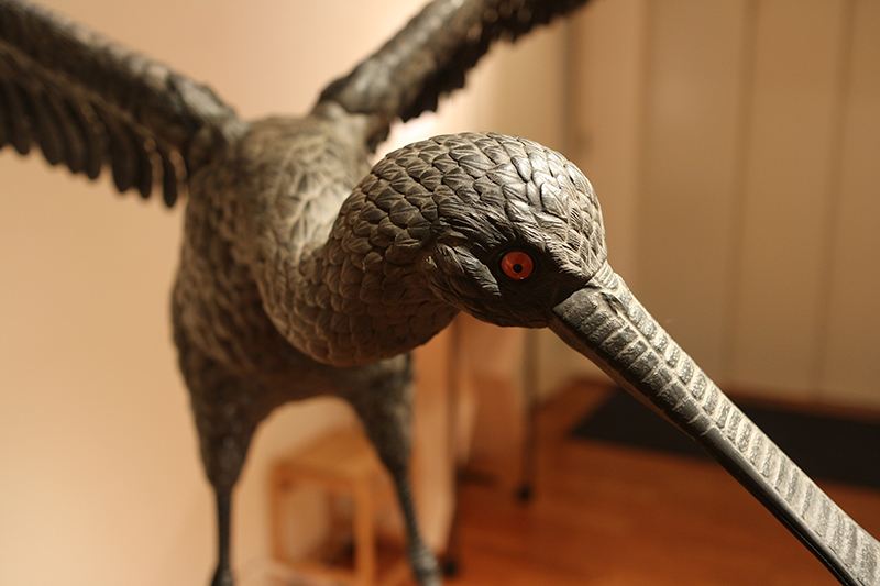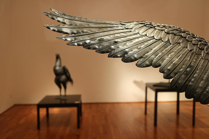 今回は個展という形で、固い素材である鉄を主な素材として、躍動的な動物や鳥など