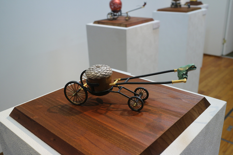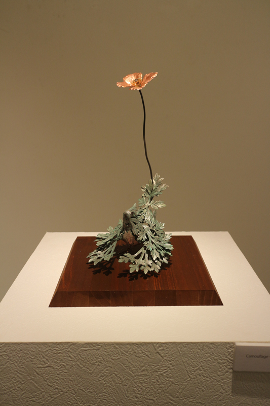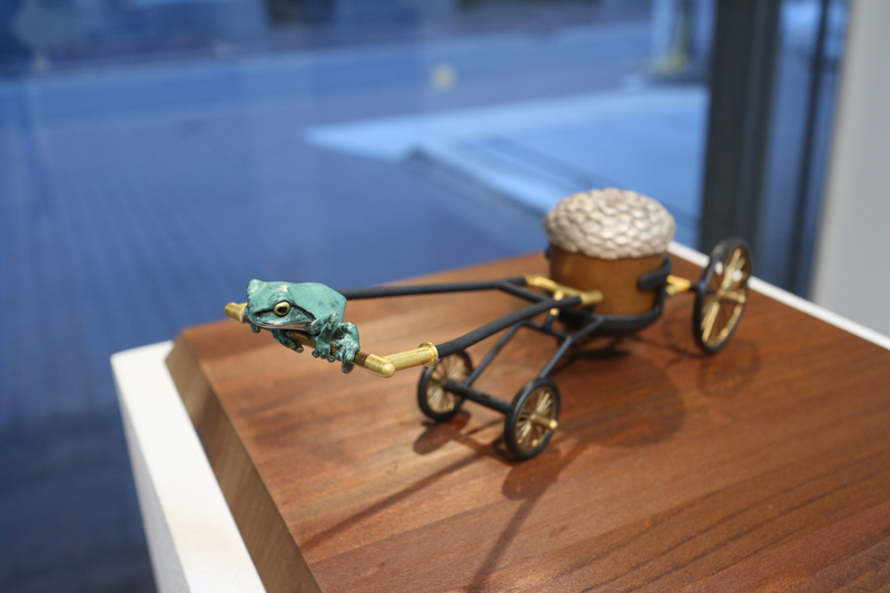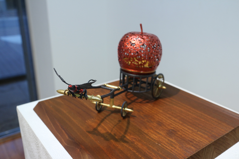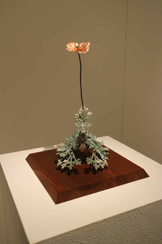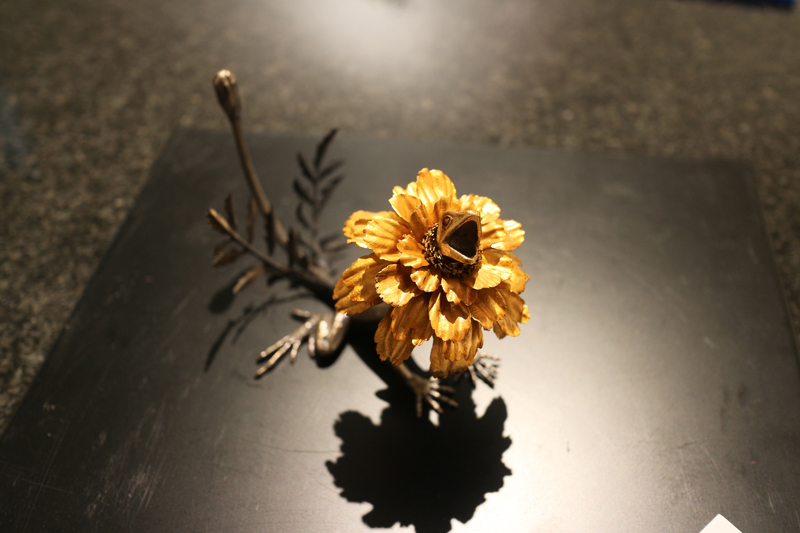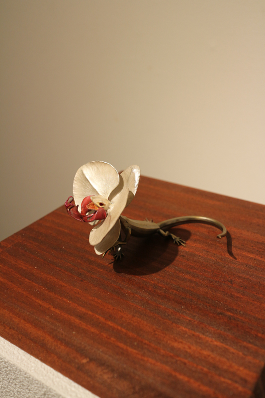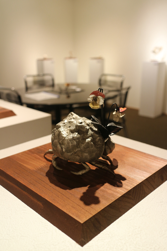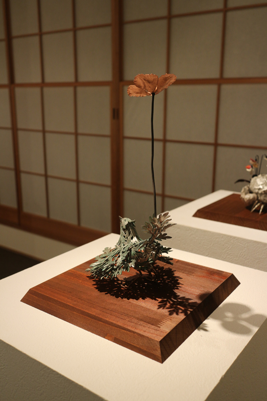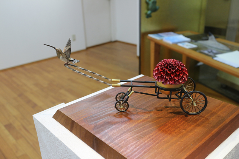 水代達史は彫金技法をもちい、いろいろな金属で動植物をつくりあげています。