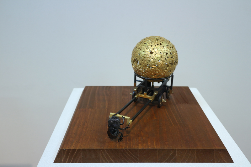掲載作品 >「Parade」 / 銅、真鍮、金メッキ、銀メッキ、革 / H35×W35×D20cm
