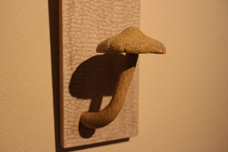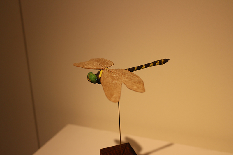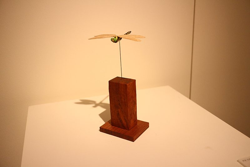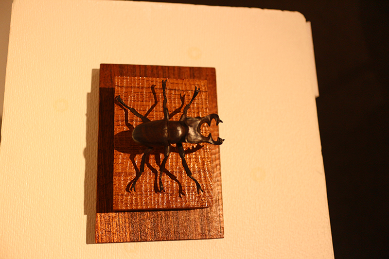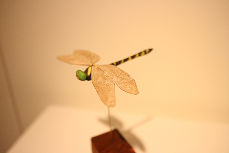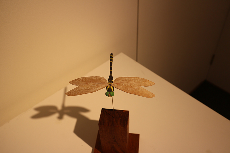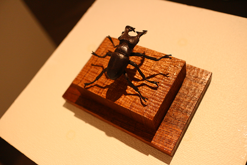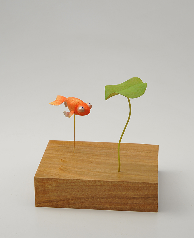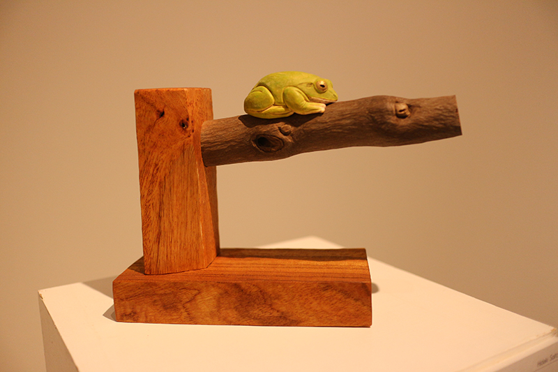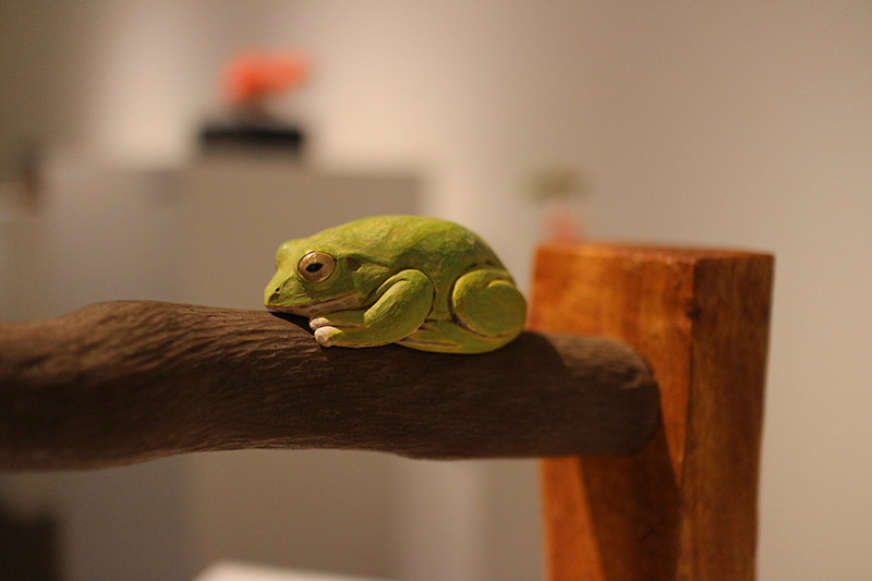Hideki Saito creates wooden sculptures of full scale animals or plants such as clover, ladybug and sometimes rain frog.