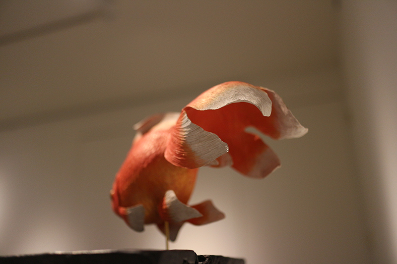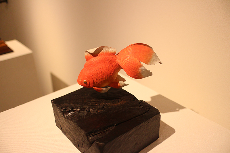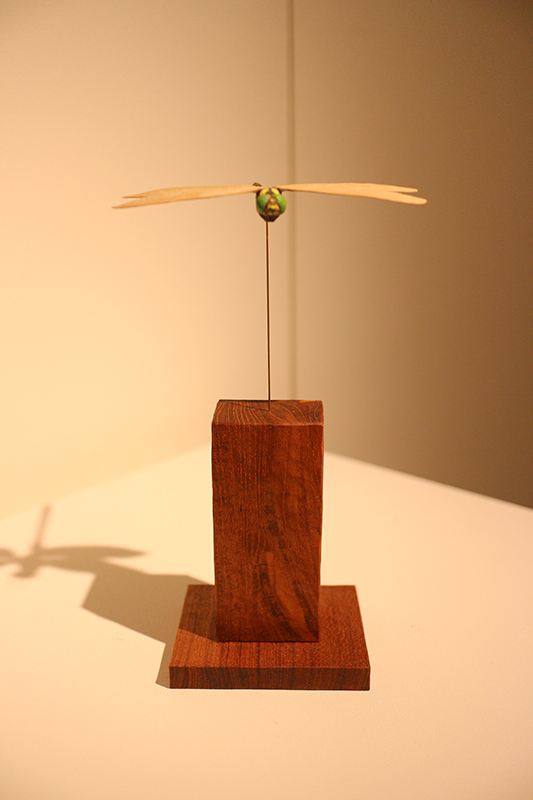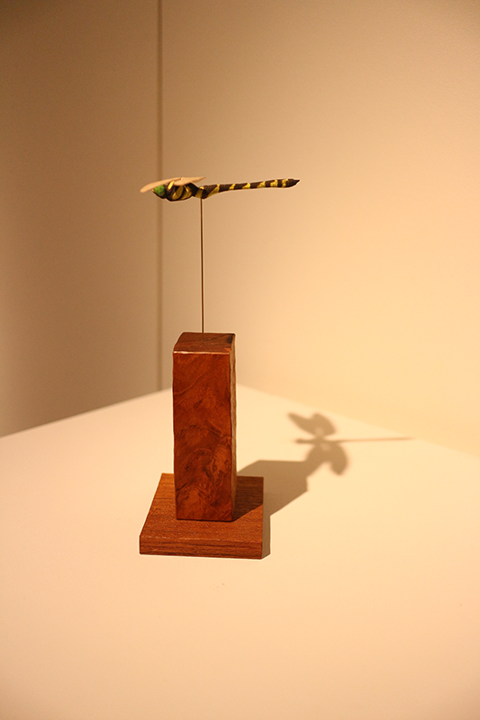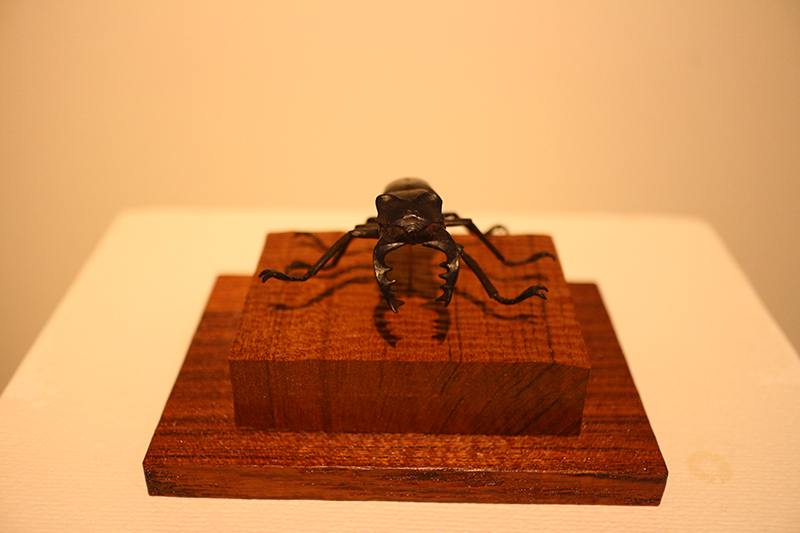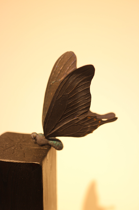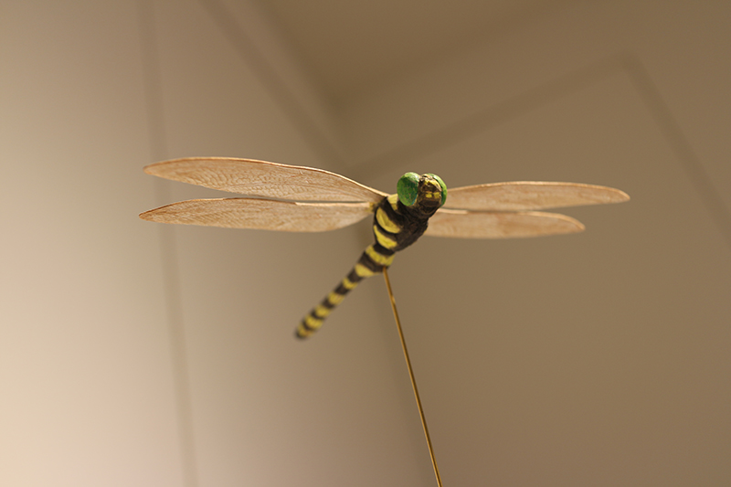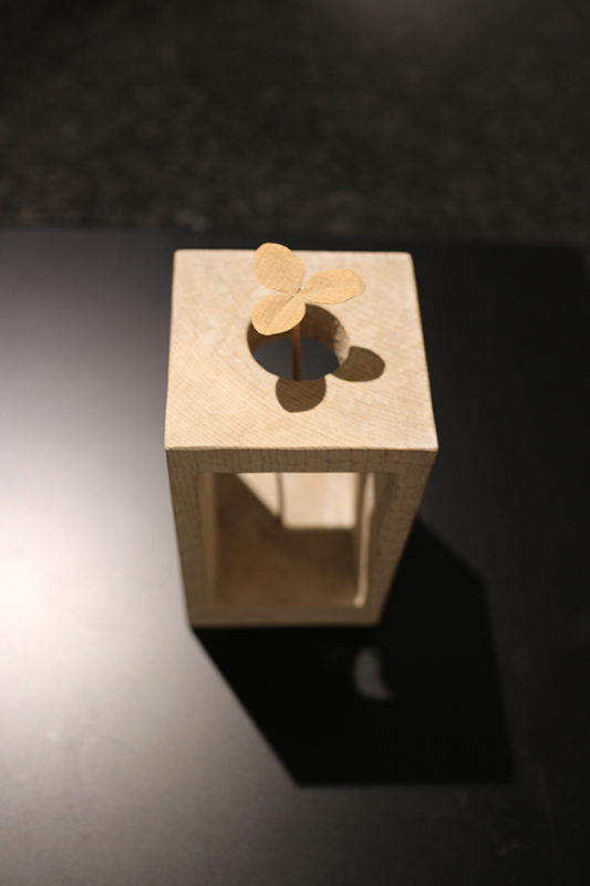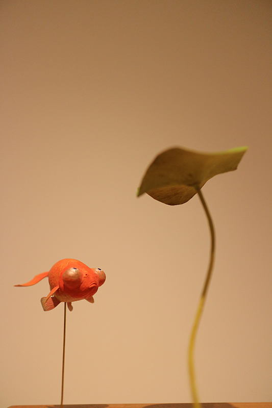 Hideki Saito creates wooden sculptures of full scale animals or plants such as clover, ladybug and sometimes rain frog.