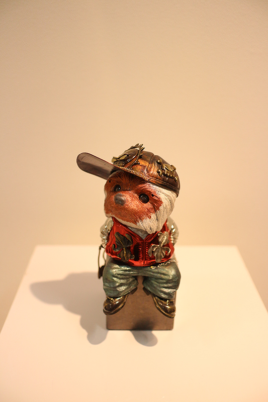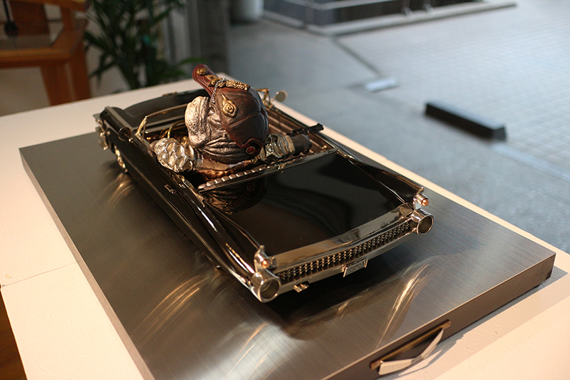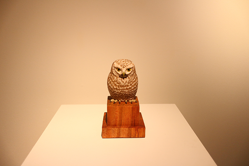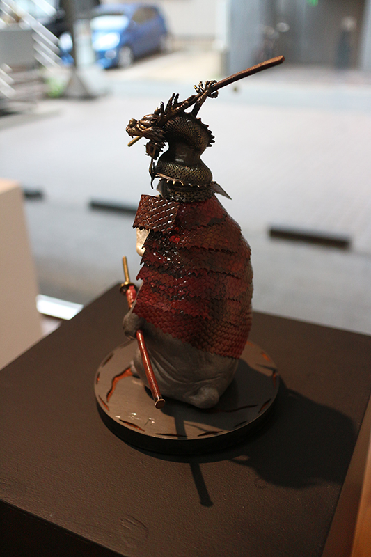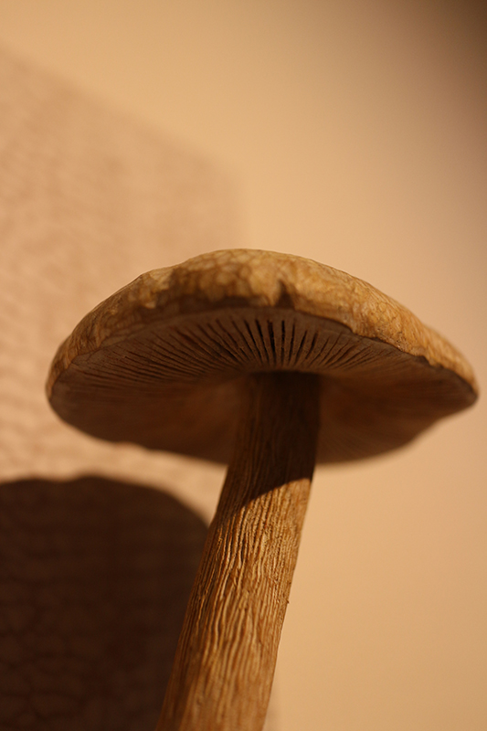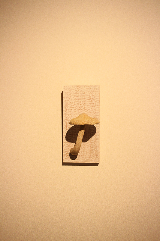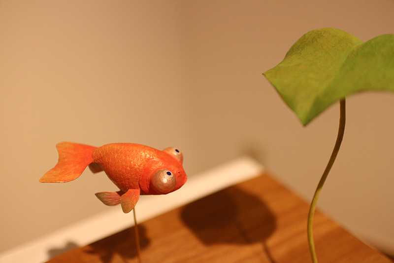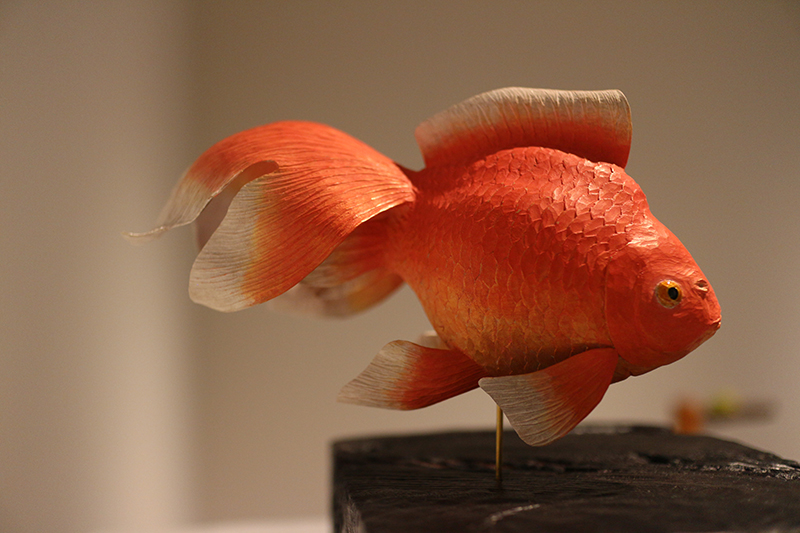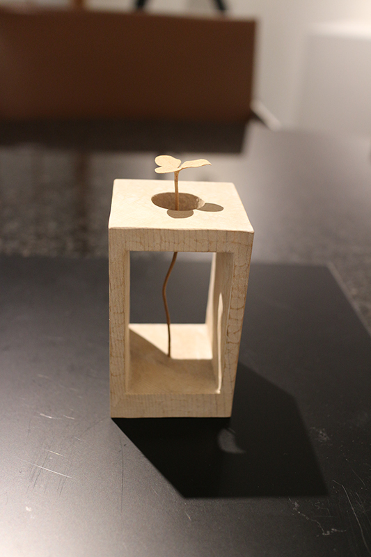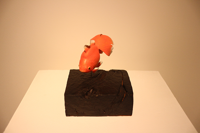 Hideki Saito creates wooden sculptures of full scale animals or plants such as clover, ladybug and sometimes rain frog.