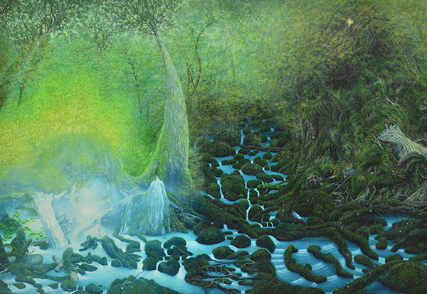 2015年には、「森は一滴のしずくから生まれる。」という言葉からスタートする『水の森』を100号サイズのキャンバスに、1日10時間の制作を4か月かけ、絵の部分や全体を撮影してできた絵本を刊行されました。