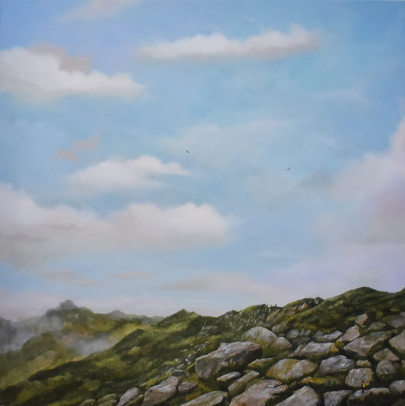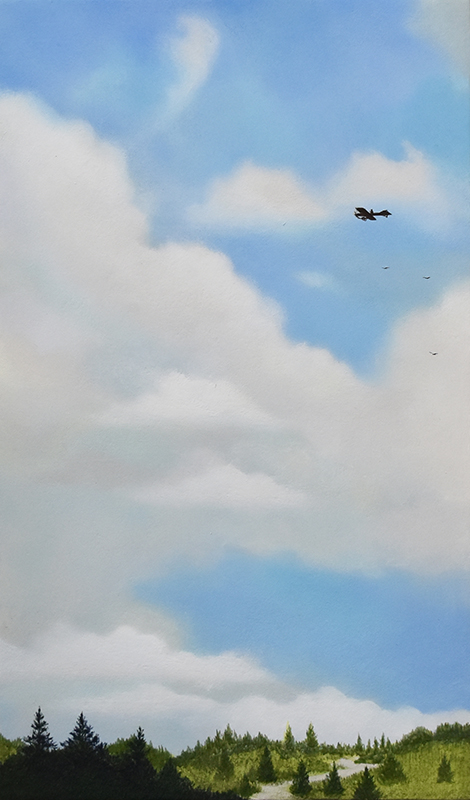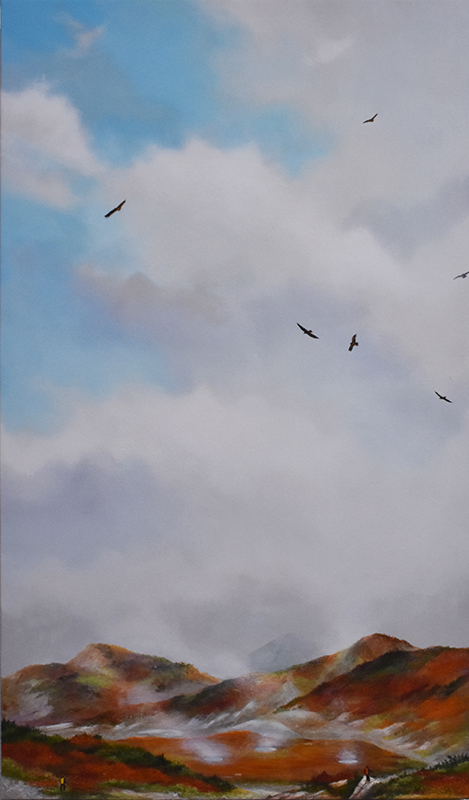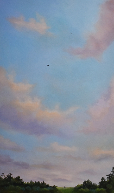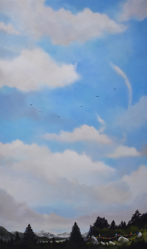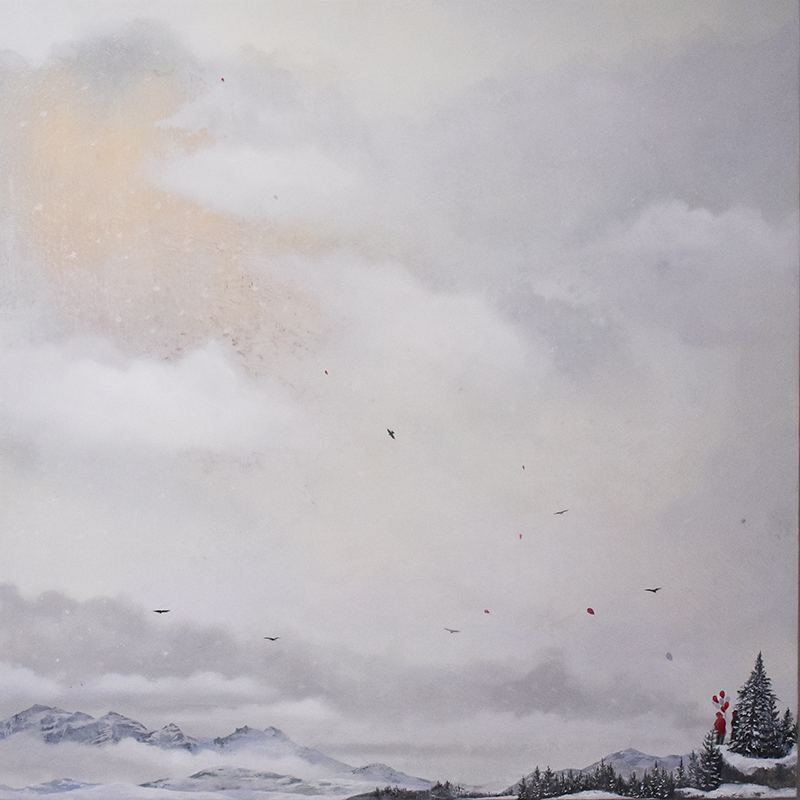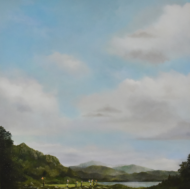 ここ最近の作品は、小さな人が画面上に登場しています。虹を空にかけたり、凧揚げをした
