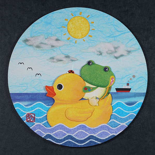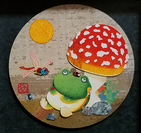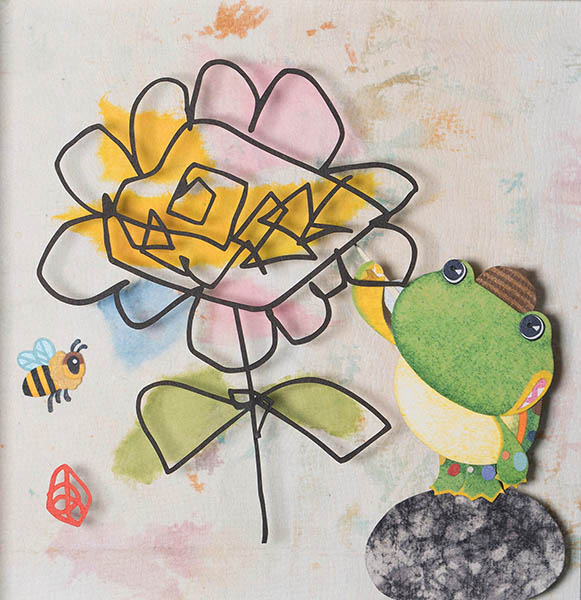 その色をそのまま使いながら切り絵、ちぎり絵、はり絵を混合し、