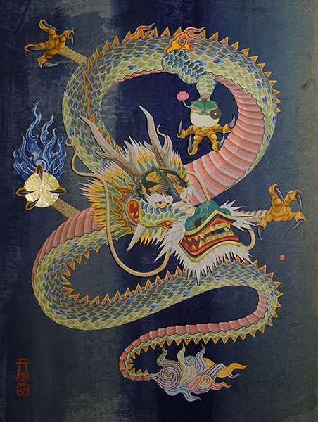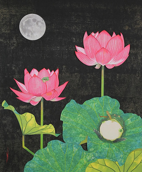 中村彰良は、絵具は一切使わず、元々市販されている和紙を使用し、