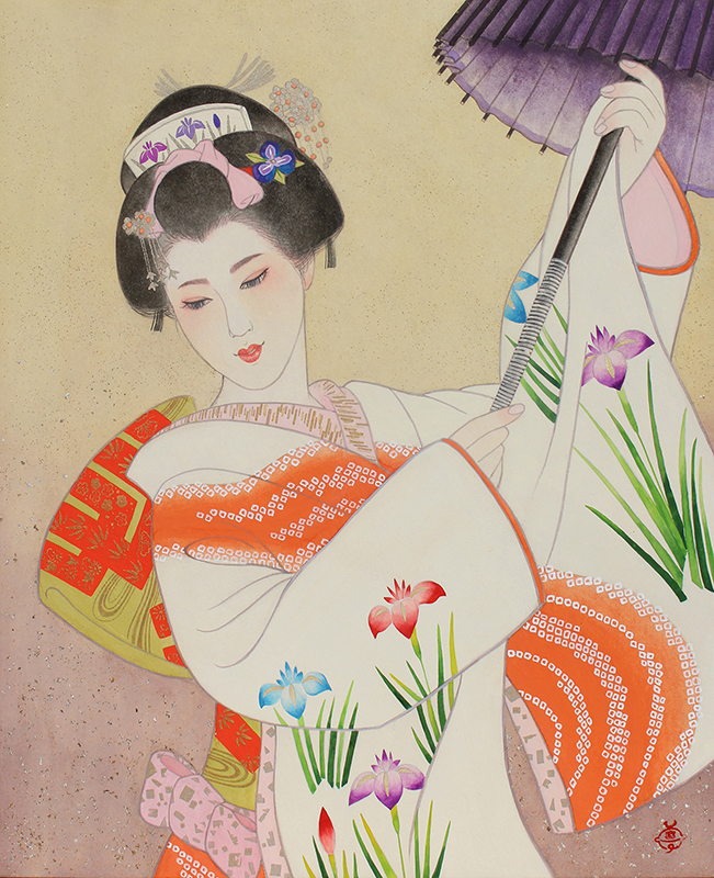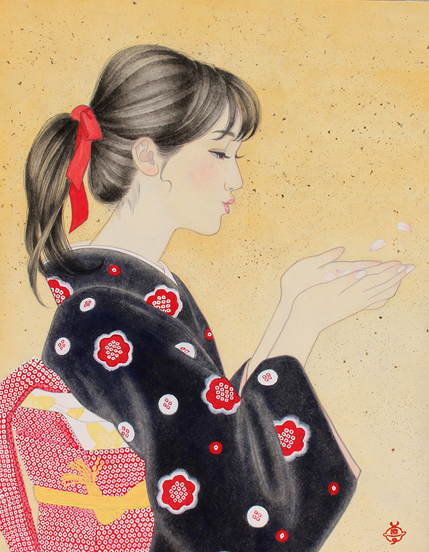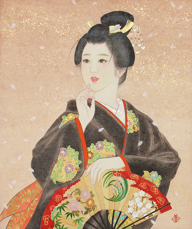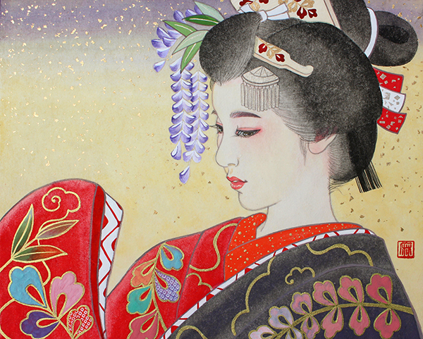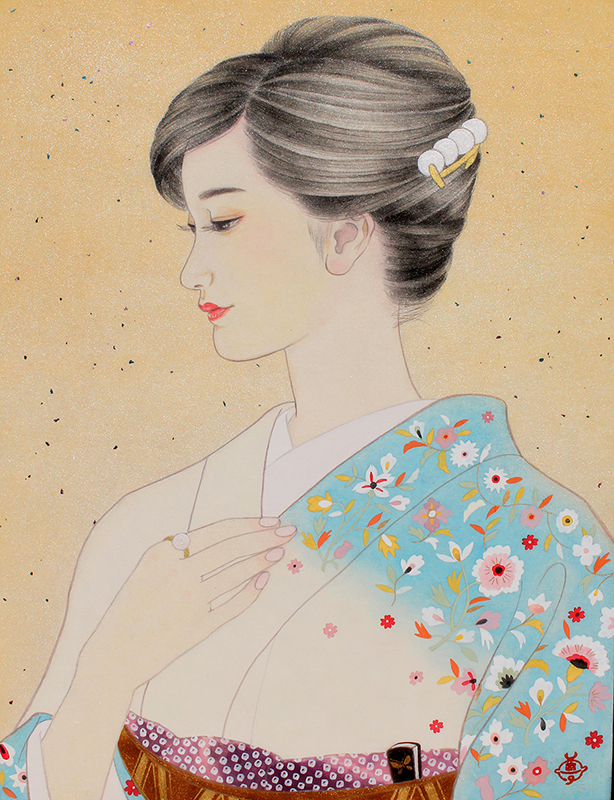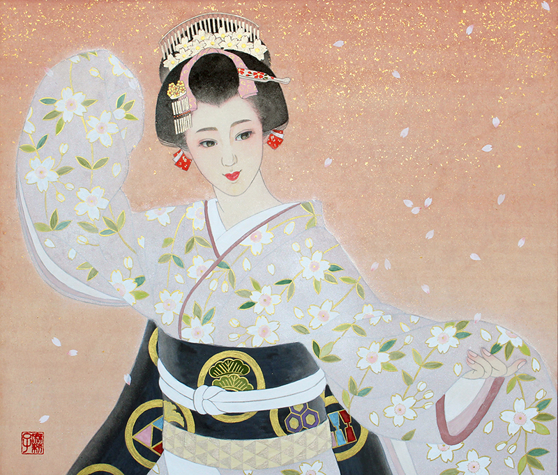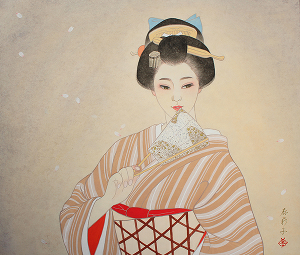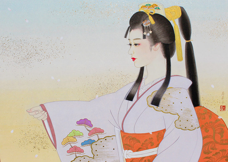 日本舞踊 猿若流(猿若海鈴)の師範でもあり、絵の中のモデルの所作がとても美しく描か