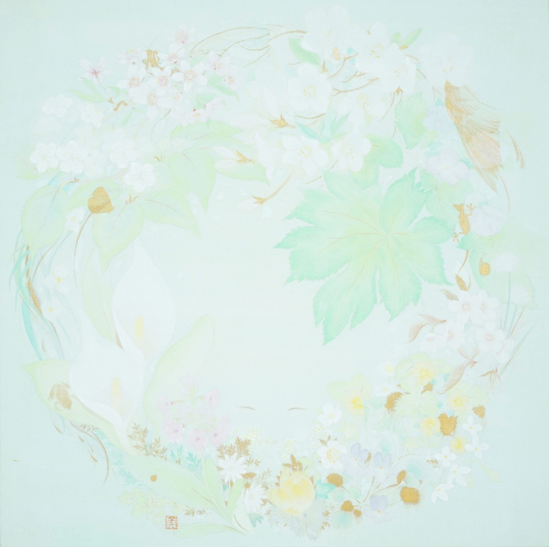 生死と向き合い儚くも輝く命を目に心地好い形と色で表現しています。そして古典技法を用いて制作することで人の生きた証としての文化の礎を紡いでいきたいです。