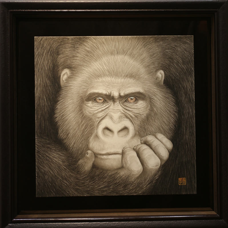 2011年新生堂個展では、人間に改良された鶏を、版画技法と日本画を併用し'共存'をテーマに発表しました。