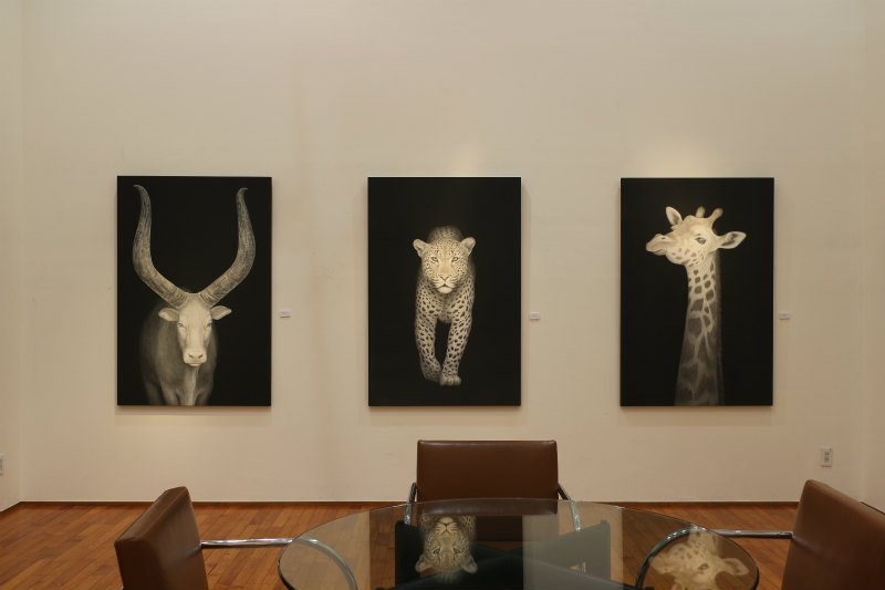 また今年髙島屋を巡回した個展では、動物の楽園をとおして平和への願いを込めた作品を描きました。