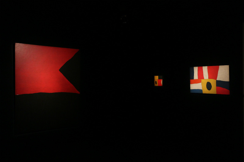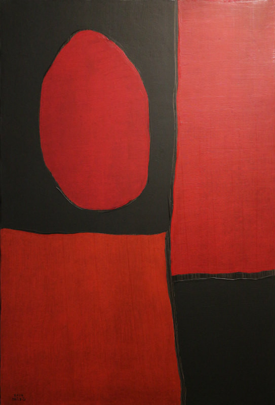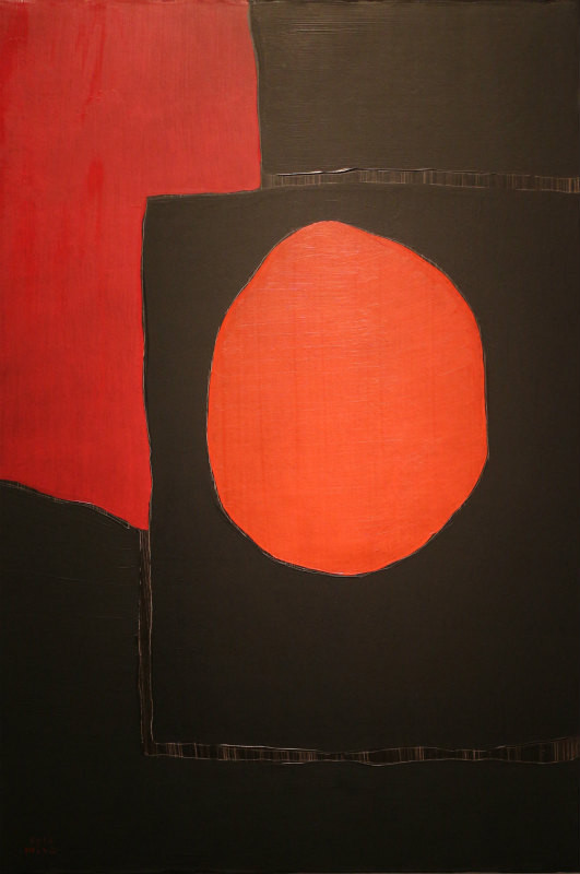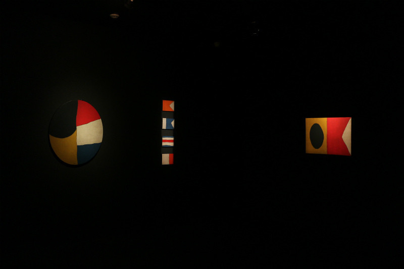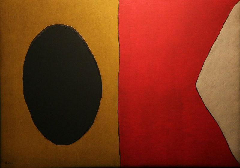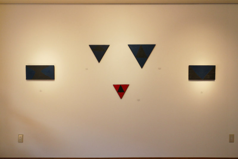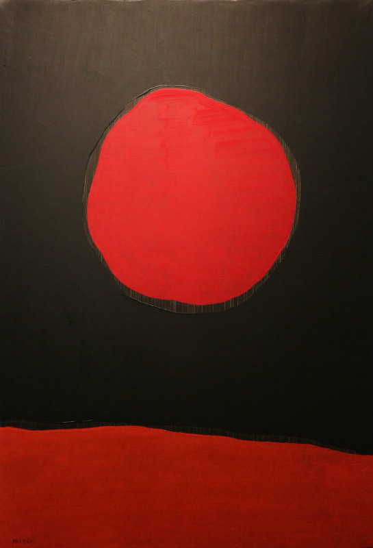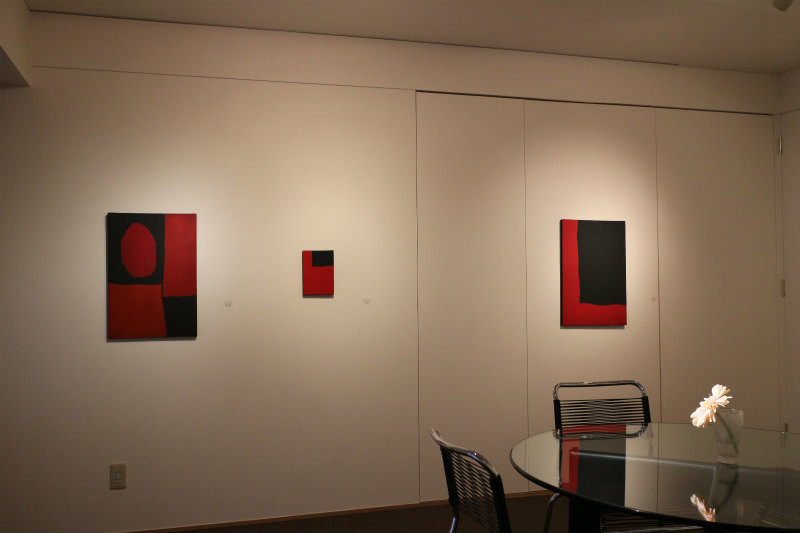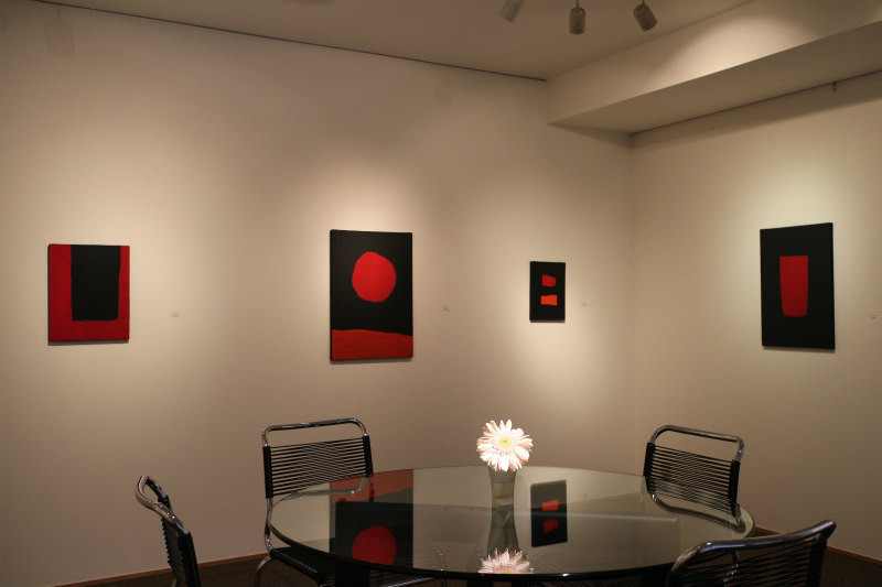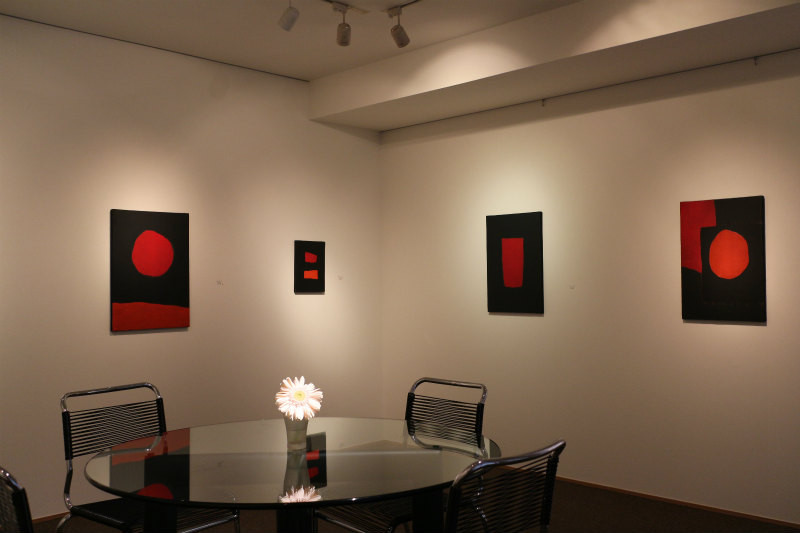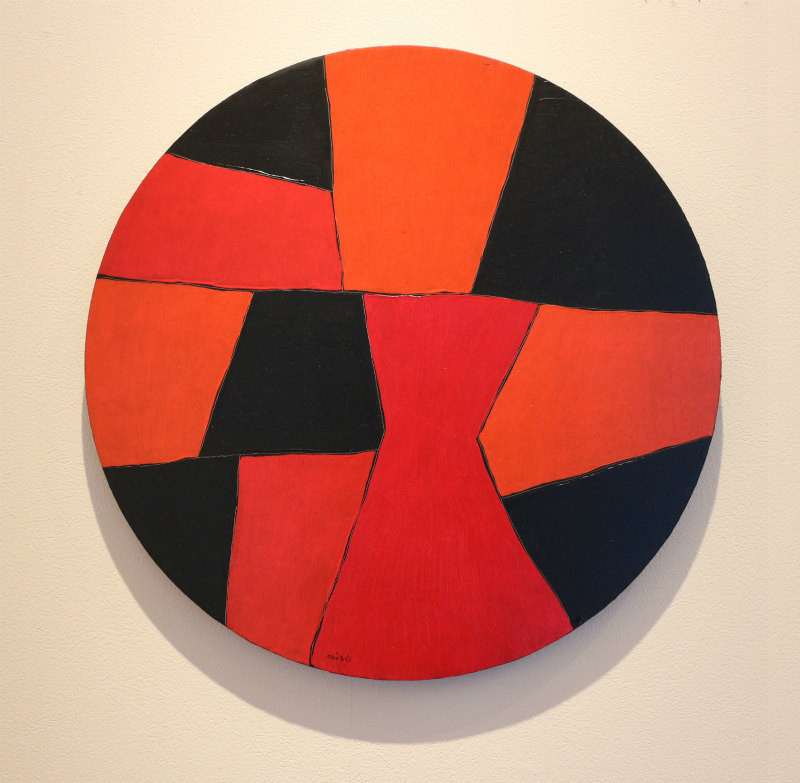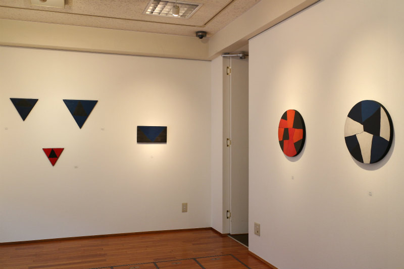 【上部掲載画像】 「作品」 Φ40cm 豊かな色彩で国内外にて精力的な活躍を続けてきたMIZUの作品展を今年も開催いたします。三角形、円の抽象をはじめ、赤と黒の作品の部屋、フラッグの作品の部屋と異なる会場空間を展覧いたします。大作から小品まで約30点のMIZUの世界を是非お楽しみください。展覧会風景