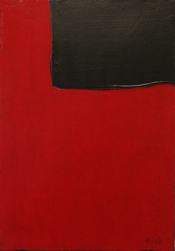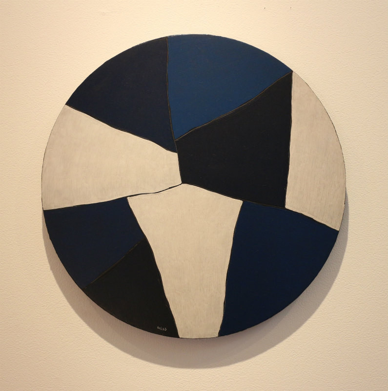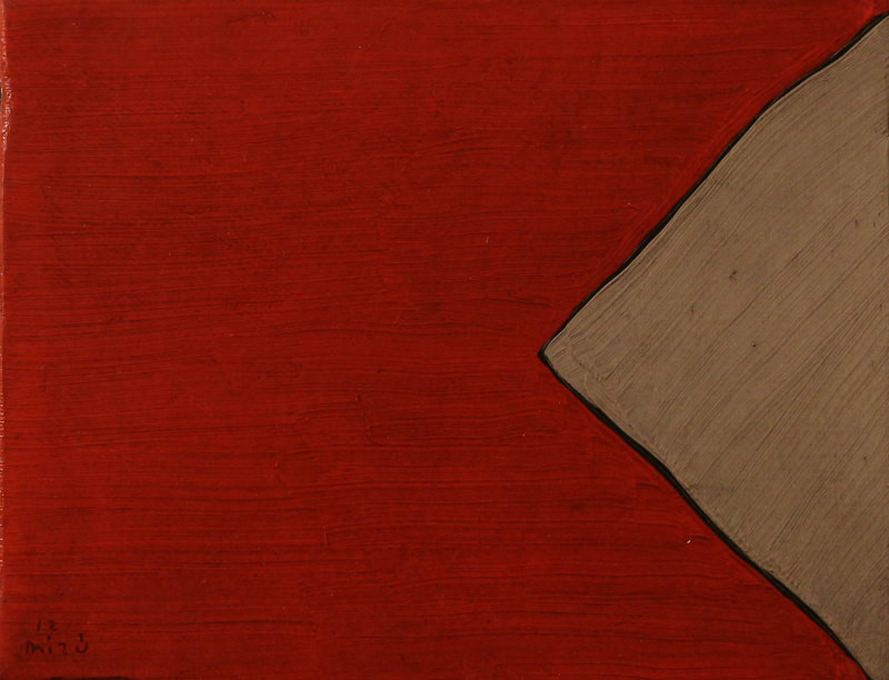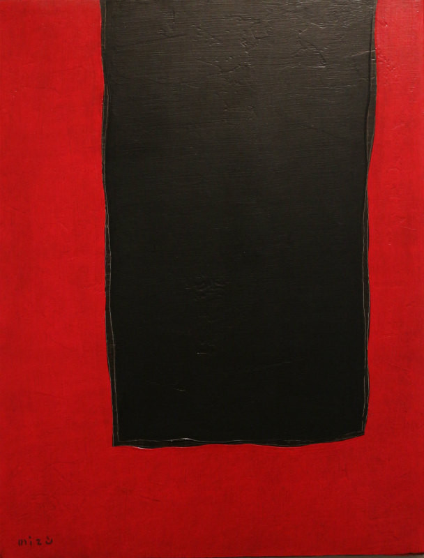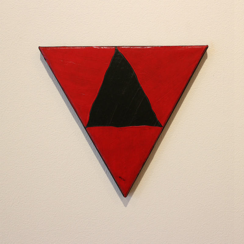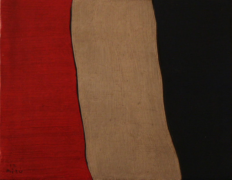 【上部掲載画像】 「作品」 Φ40cm 豊かな色彩で国内外にて精力的な活躍を続けてきたMIZUの作品展を今年も開催いたします。三角形、円の抽象をはじめ、赤と黒の作品の部屋、フラッグの作品の部屋と異なる会場空間を展覧いたします。大作から小品まで約30点のMIZUの世界を是非お楽しみください。