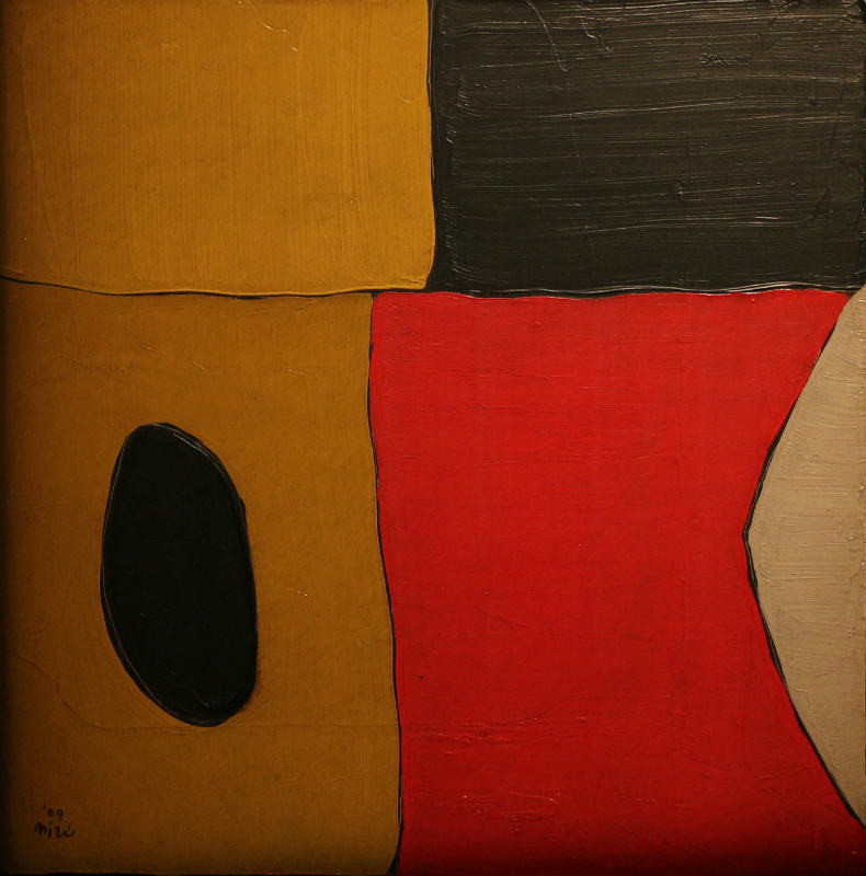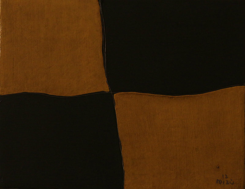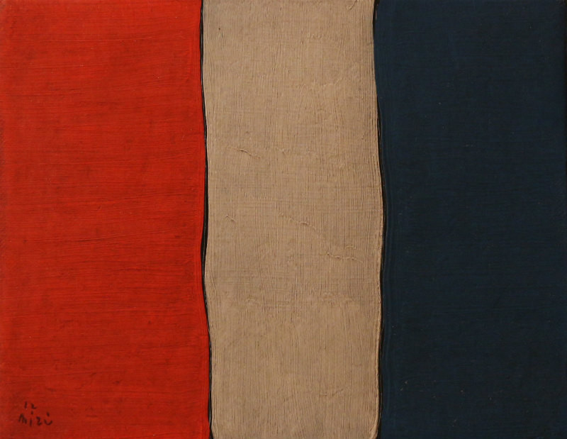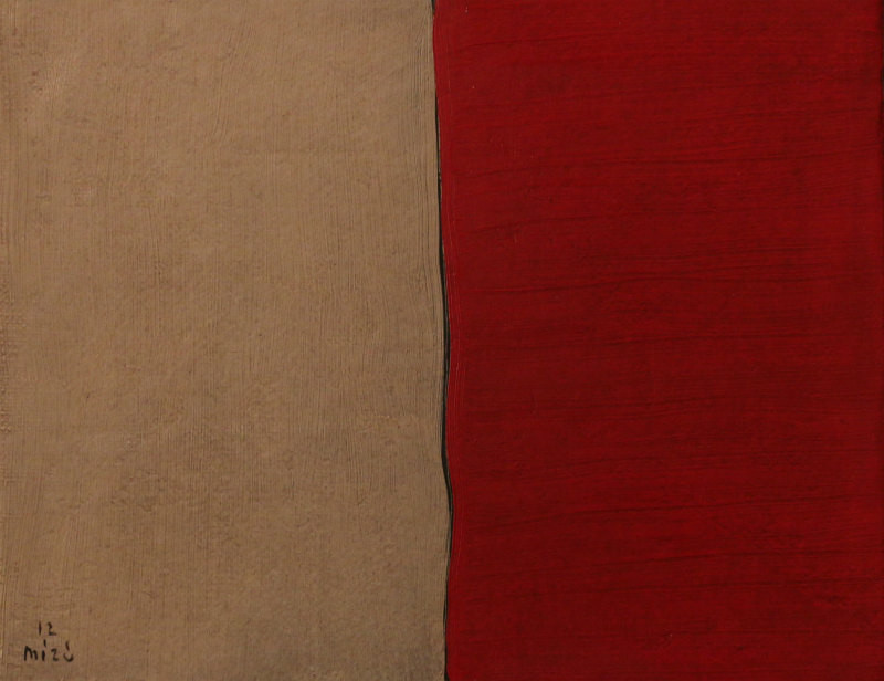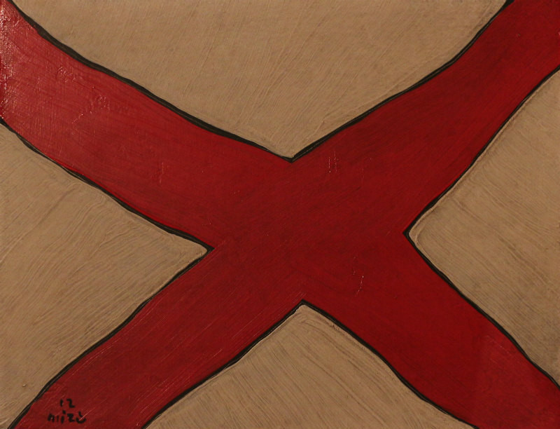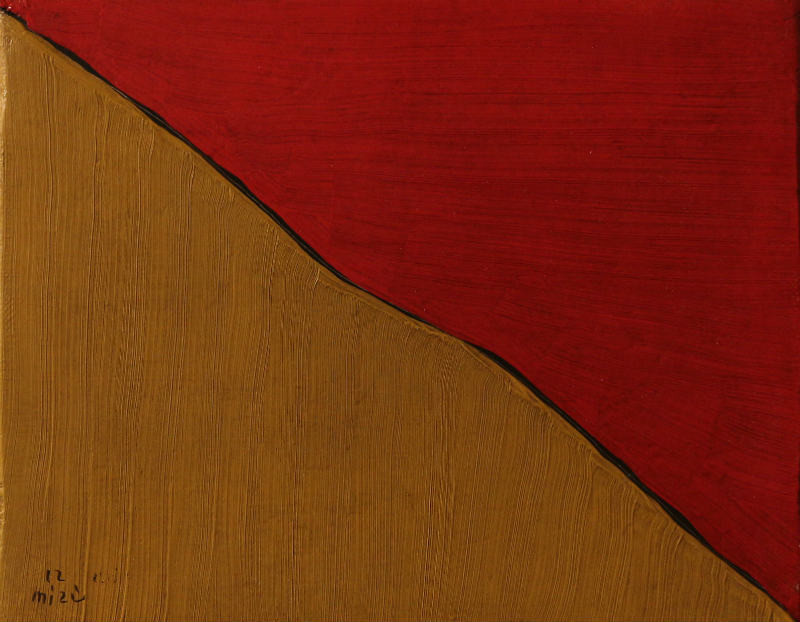 【上部掲載画像】 「作品」 Φ40cm 豊かな色彩で国内外にて精力的な活躍を続けてきたMIZUの作品展を今年も開催いたします。三角形、円の抽象をはじめ、赤と黒の作品の部屋、フラッグの作品の部屋と異なる会場空間を展覧いたします。大作から小品まで約30点のMIZUの世界を是非お楽しみください。